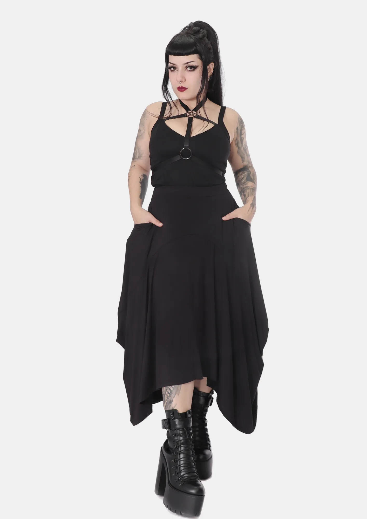 Confortável e versátil, seu decote tipo V é adornado com detalhe strappy feito em elástico que é embutido na peça que valoriza o busto. Seus arremates em argola e pentagrama são o destaque da peça, elevando seu look.