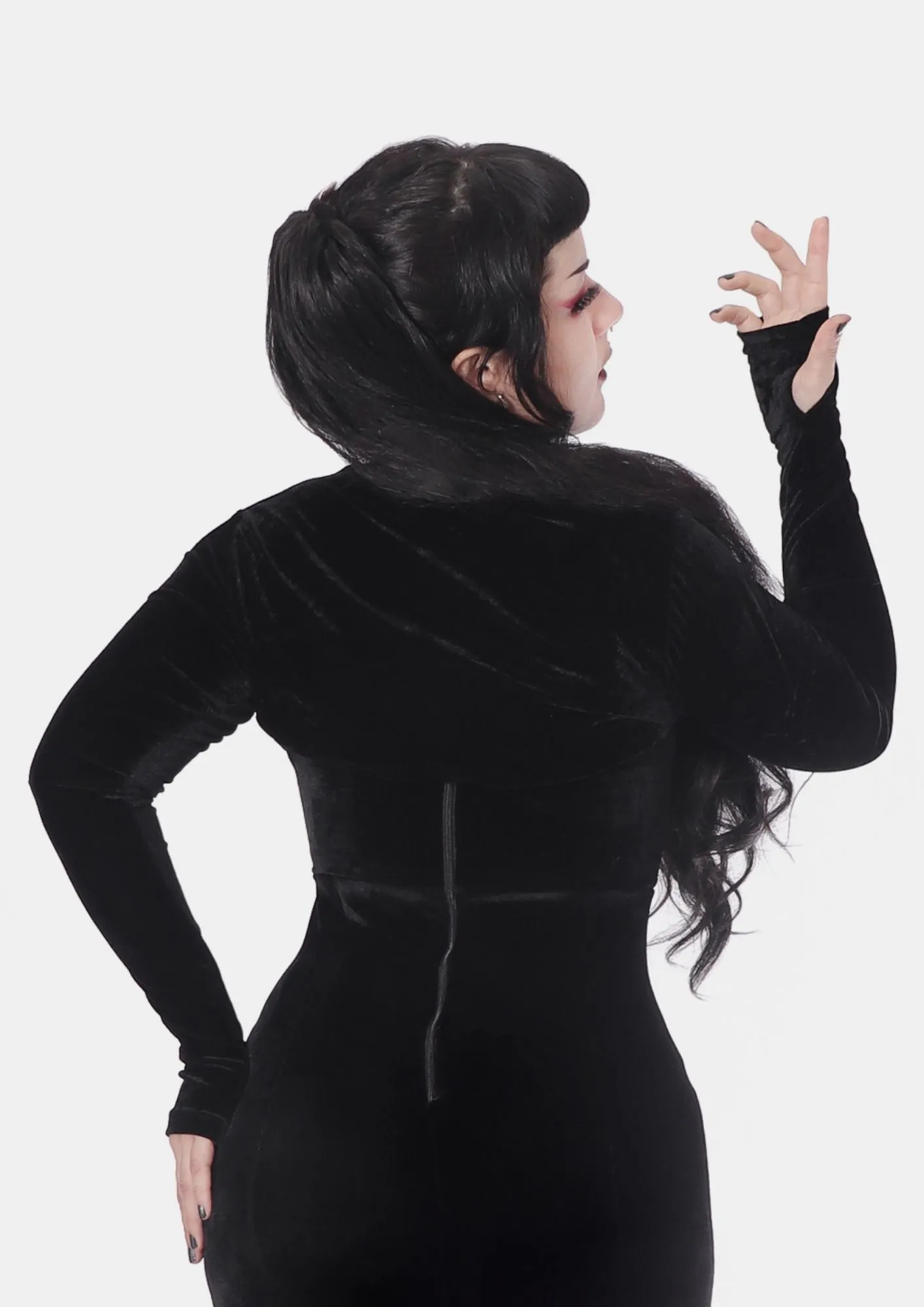 O Bolero Veludo Justo Noctos é um clássico repaginado da Sweet Sam que une sofisticação e estilo alternativo. Feito em veludo macio com elasticidade, ele conta com um design justo de mangas longas e com detalhe pra encaixe dos polegares. Essa peça icônica é perfeita para compor looks poderosos e combina perfeitamente com o Vestido Sereia Femme Fatale para um visual bem Morticia Addams clássica.