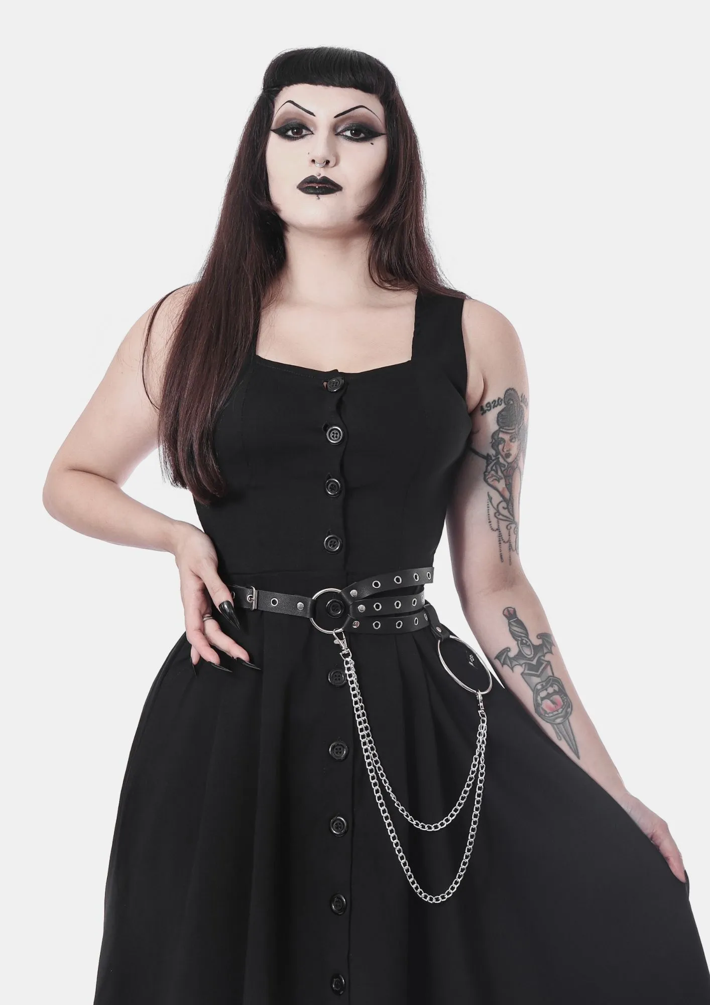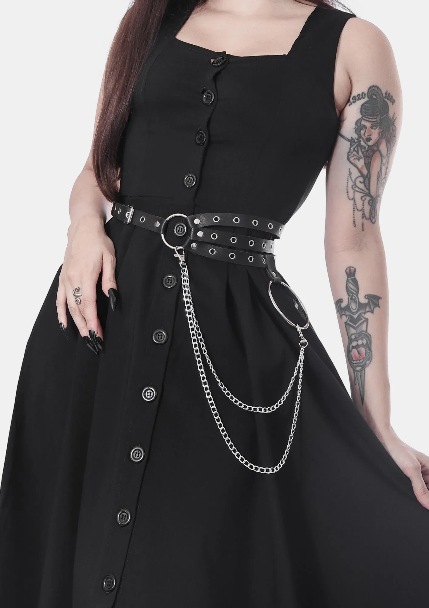 O Cinto Apófis é perfeito para acinturar ou decorar seus looks. Feito em material sintético de origem não animal, possui três tiras decoradas com ilhóses em toda a sua extensão, arrematados por uma argola grande e corrente com mosquetão decorativo. Totalmente ajustável e uma adição incrível para seu look.