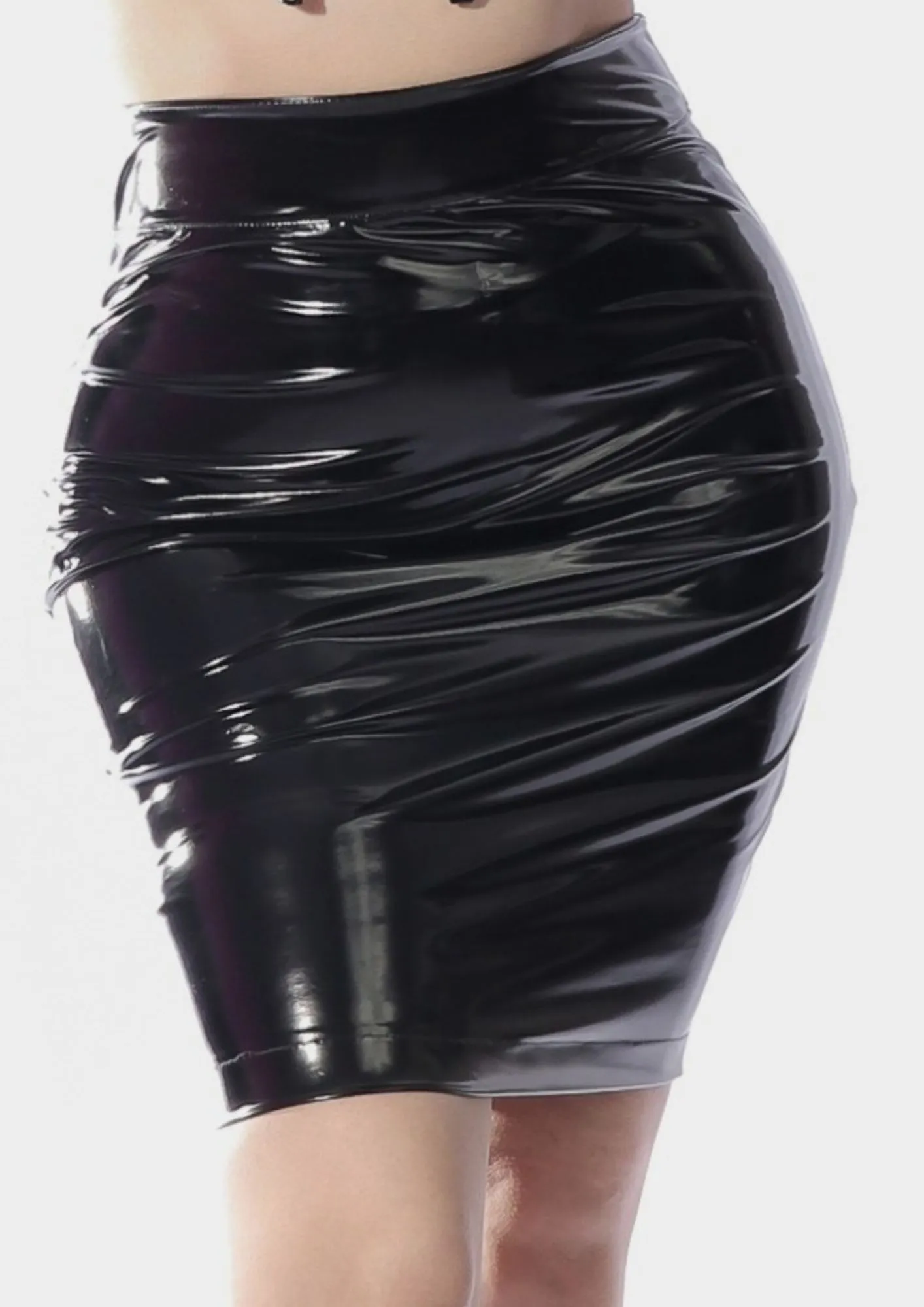 A Saia Justa Replicant é feita em vinil e possui modelagem totalmente ajustada ao corpo, cintura alta, de altura aproximadamente acima do joelho e fecho em zíper na parte de trás. Seu material é encorpado, justo e de boa gramatura e junto com seu cós duplo conferem efeito modelador de média compressão, contornando perfeitamente o corpo e valorizando suas curvas.