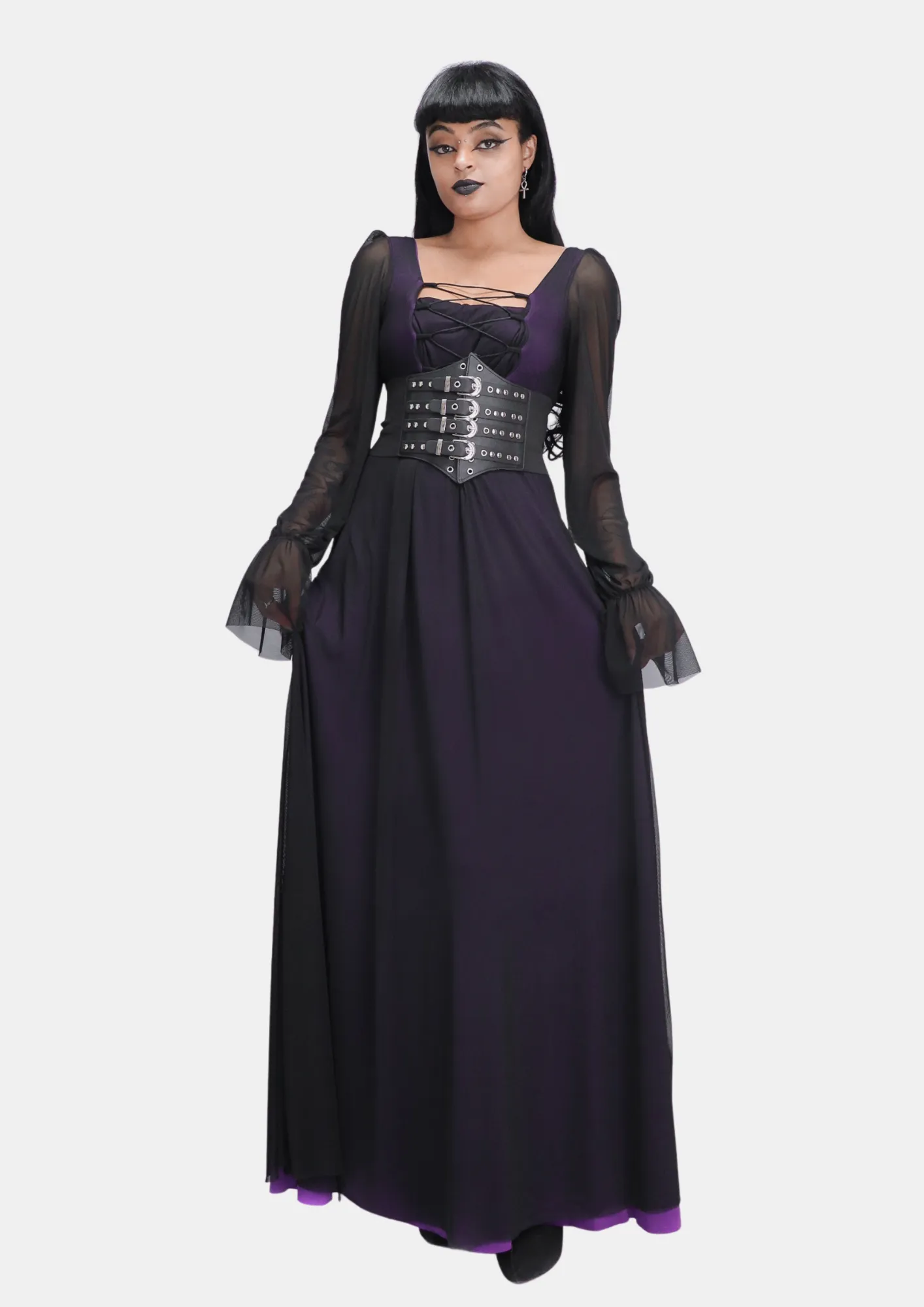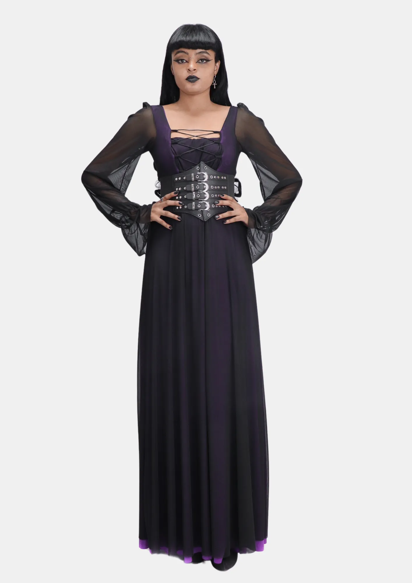 Um longo vermelho que combina sofisticação e presença, esse é o Vestido Longo Roxo Evil Queen-Limitado. Possui mangas bufantes de tule, trançado regulável com fio de cetim, recortes estratégicos na cintura que valoriza e desenha as curvas do seu corpo e modelagem ampla godê, que confere movimento, além da camada de tule por cima, que acrescenta mistério. Inspirado na Rainha de Copas, ele é um vestido perfeito para quem deseja impressionar.