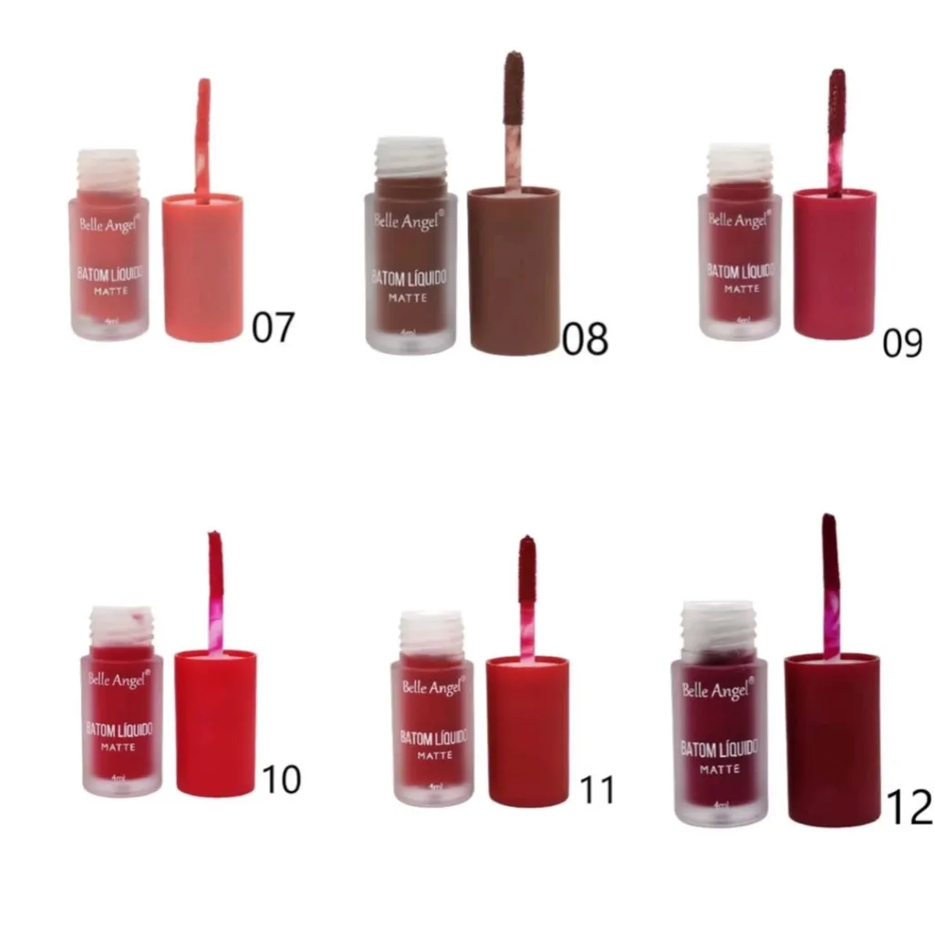 O batom líquido matte da Belle Angel possui fórmula de secagem rápida que não borra nem craquela nos lábios, tendo acabamento em textura aveludada que deixa os lábios com aparência macia. Modo de usar: Aplique uma camada do produto na parte inferior e superior dos lábios. Se preferir use o aplicador do produto para desenhar o contorno dos lábios.