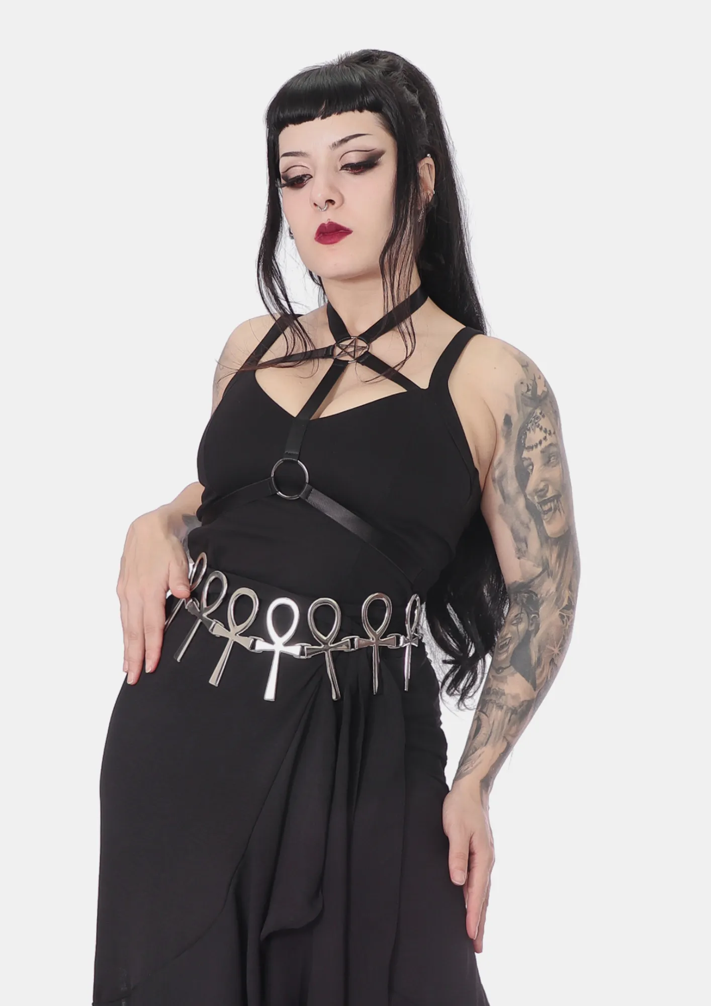 Confortável e versátil, seu decote tipo V é adornado com detalhe strappy feito em elástico que é embutido na peça que valoriza o busto. Seus arremates em argola e pentagrama são o destaque da peça, elevando seu look.