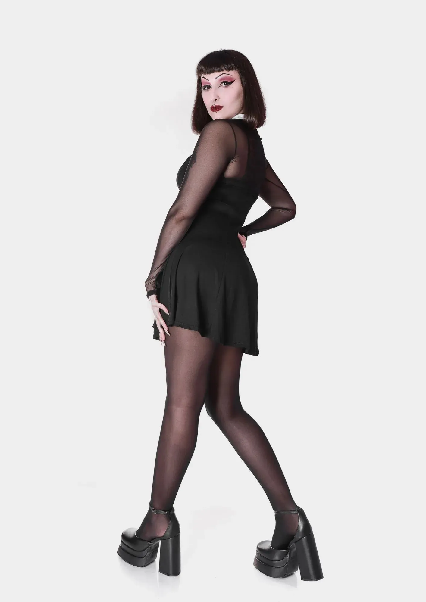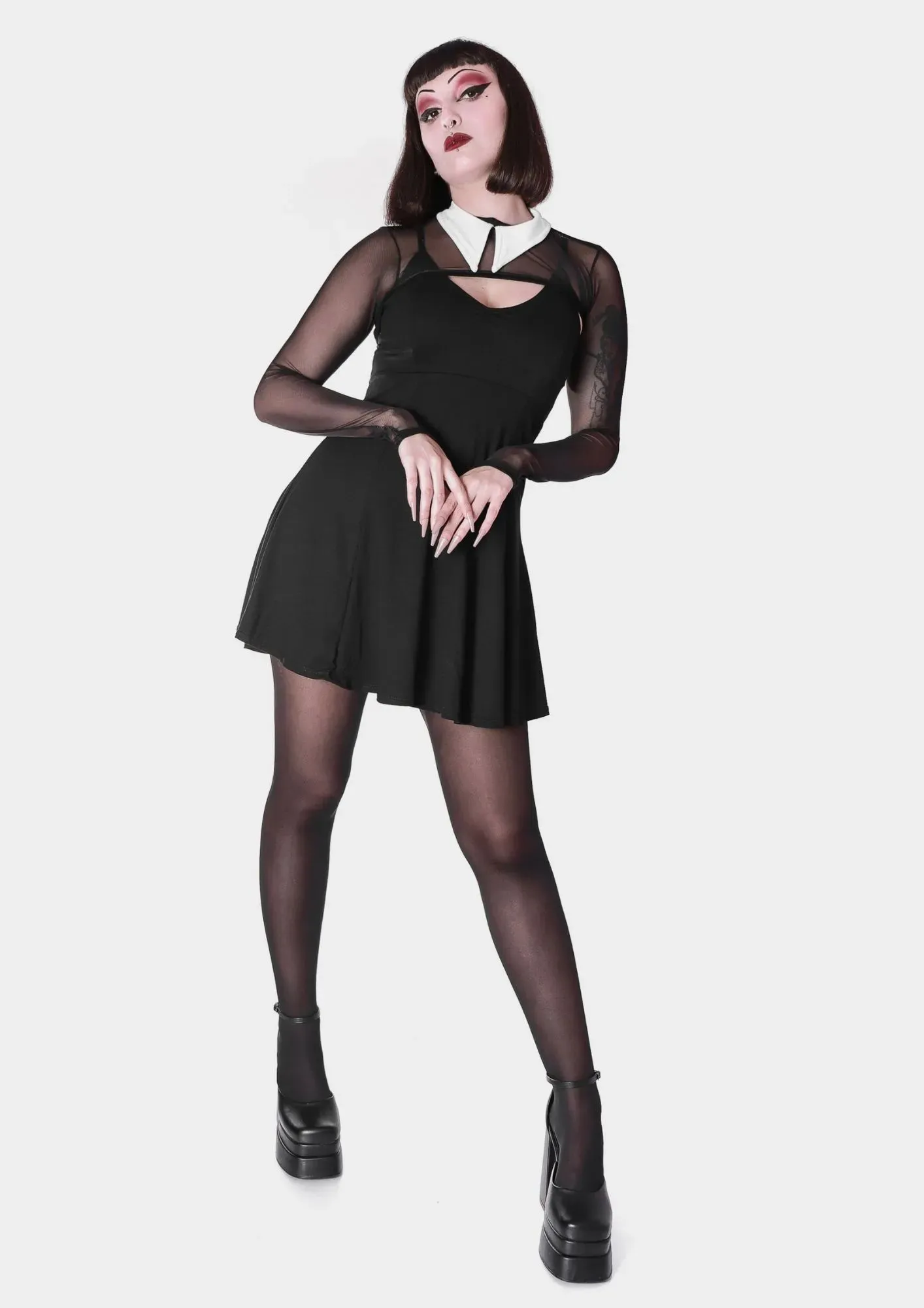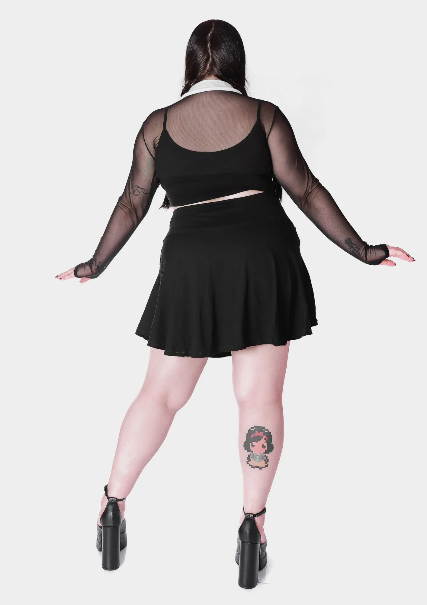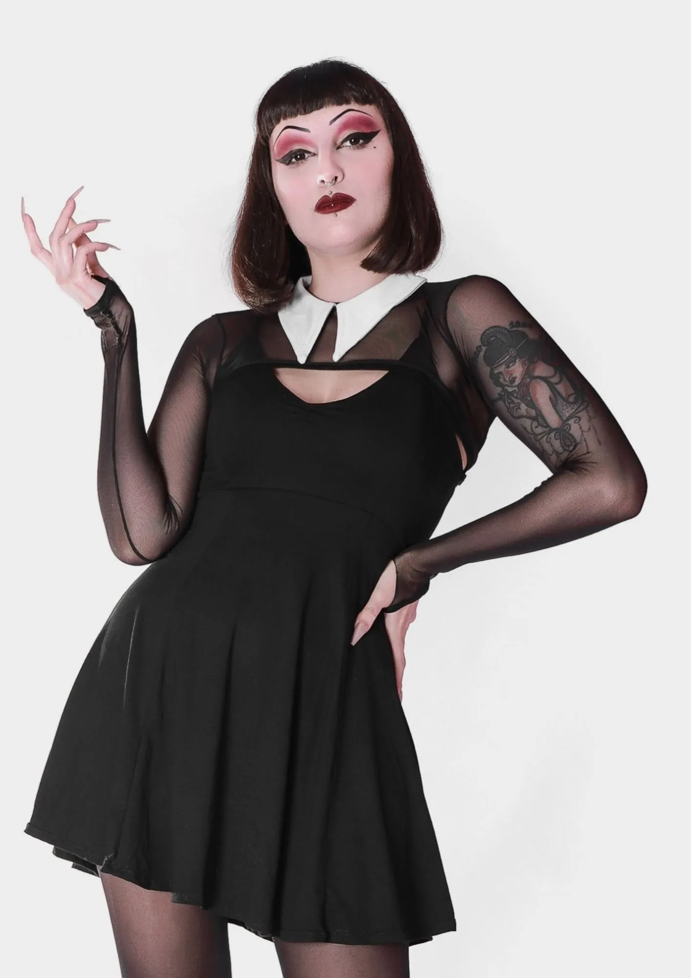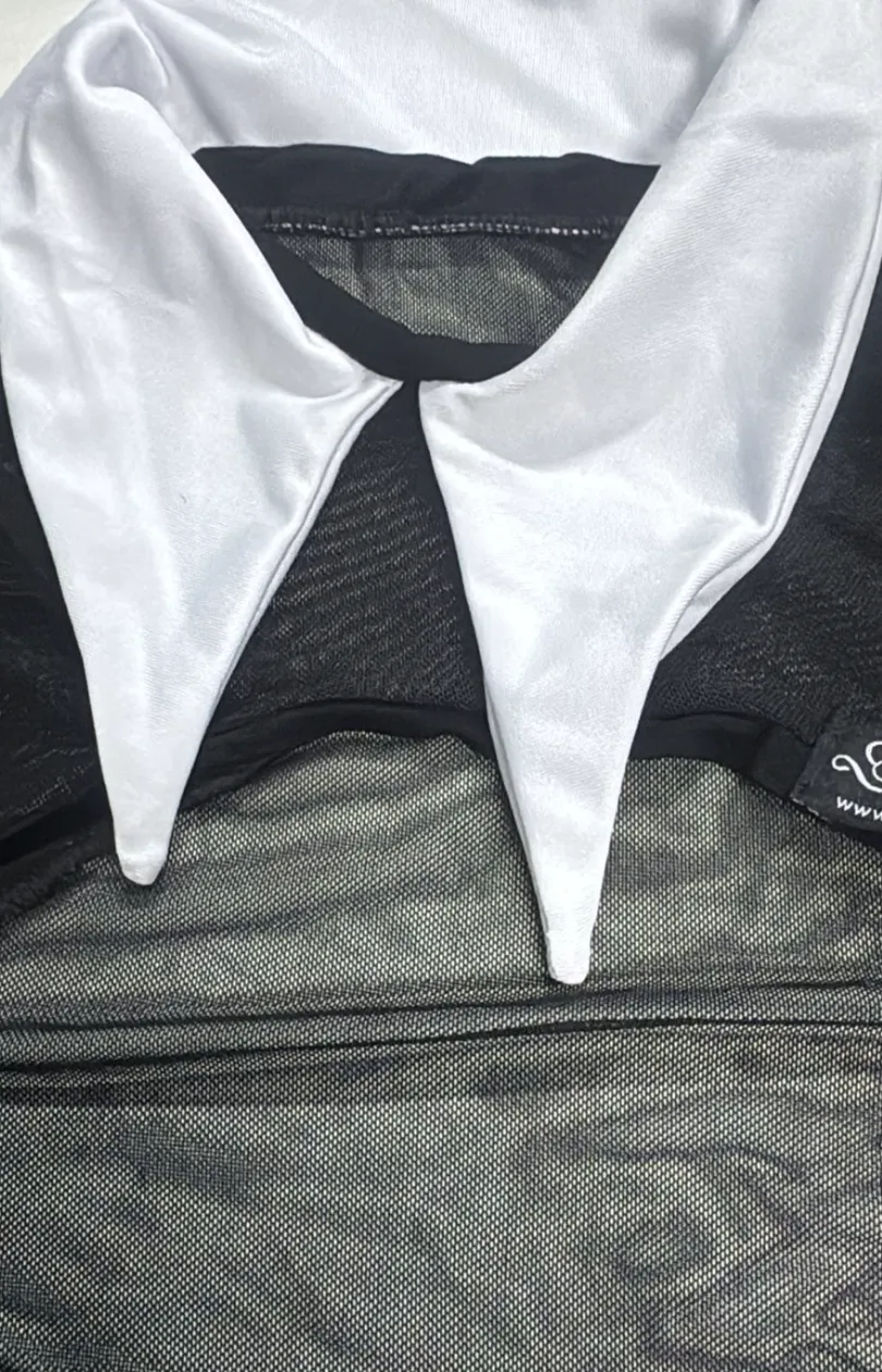 Bolero Addams com gola Wandinha e espaço para o dedão.