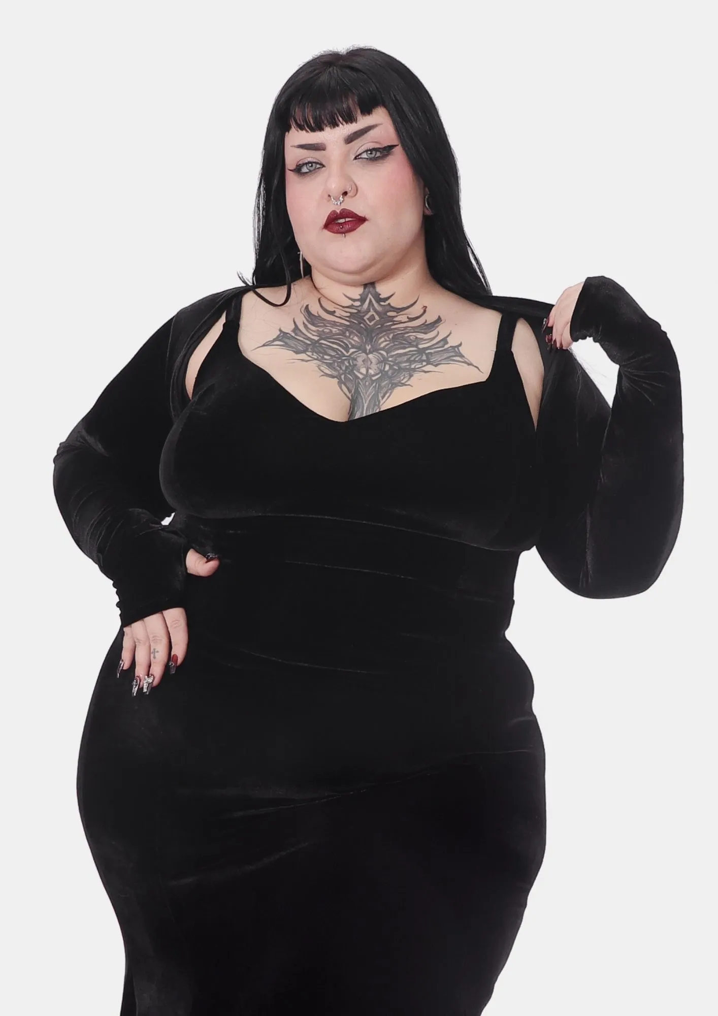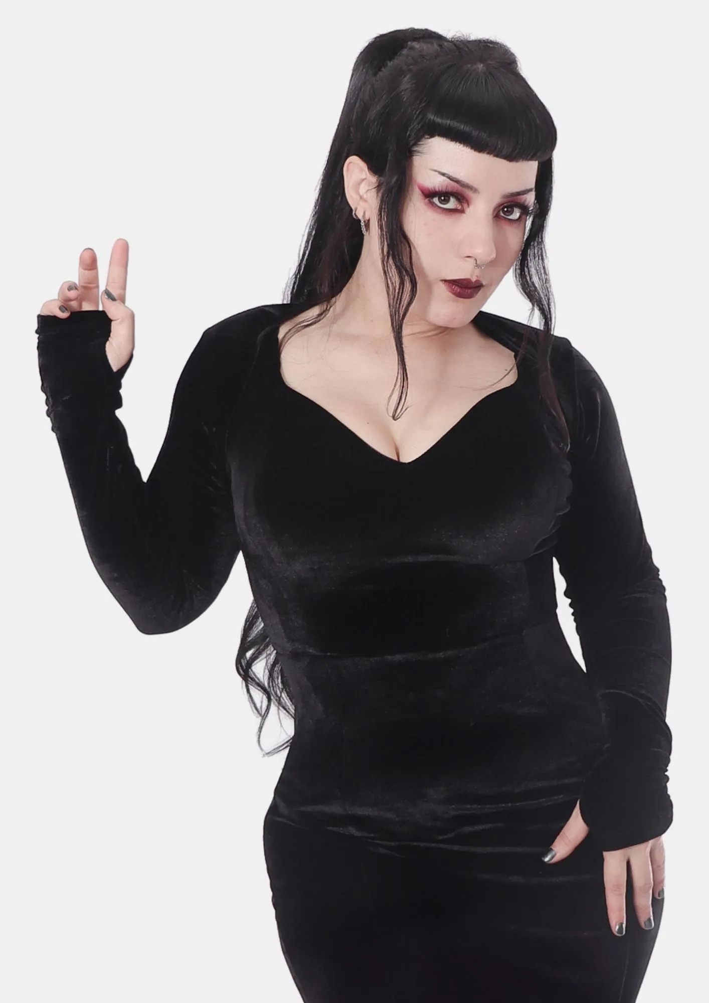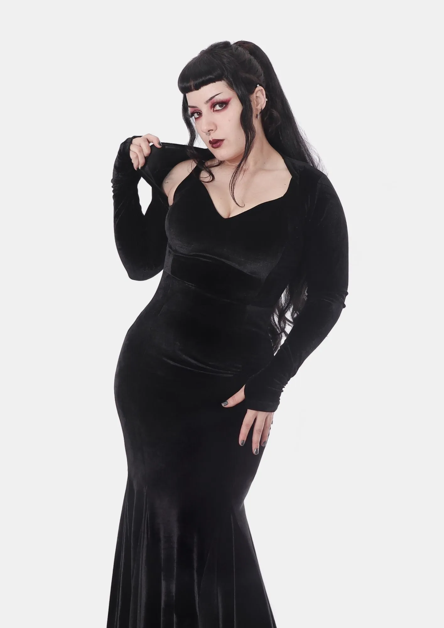 O Bolero Veludo Justo Noctos é um clássico repaginado da Sweet Sam que une sofisticação e estilo alternativo. Feito em veludo macio com elasticidade, ele conta com um design justo de mangas longas e com detalhe pra encaixe dos polegares. Essa peça icônica é perfeita para compor looks poderosos e combina perfeitamente com o Vestido Sereia Femme Fatale para um visual bem Morticia Addams clássica.