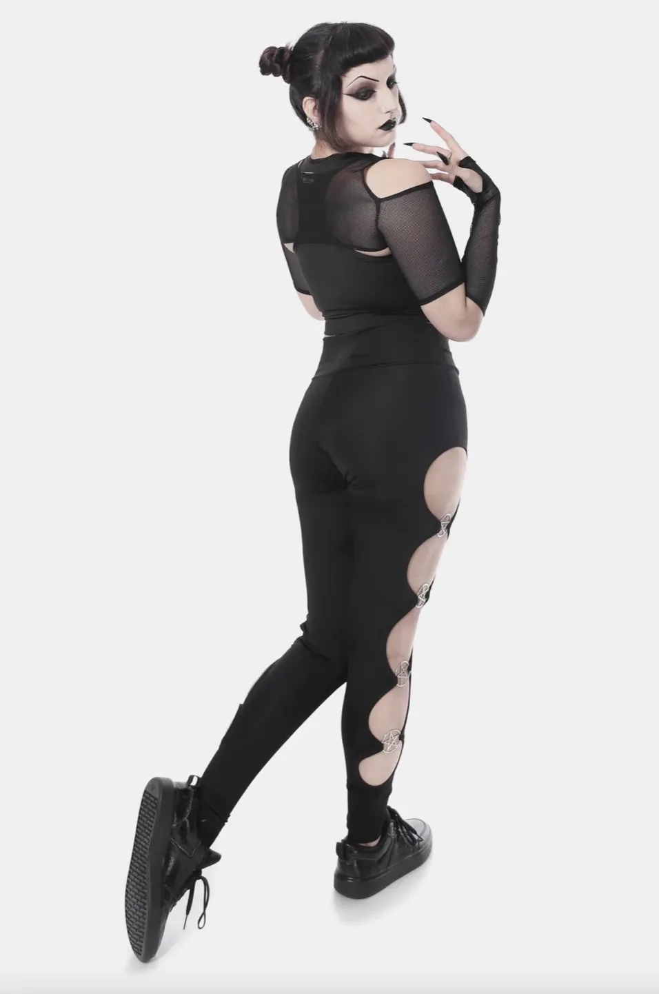 Confeccionada em suplex fitness de alta gramatura, ela não fica transparente, não marca celulite e ainda entrega aquele toque dark que amamos com recortes laterais e detalhes de pentagramas. Perfeita pra causar impacto na academia ou onde você quiser.