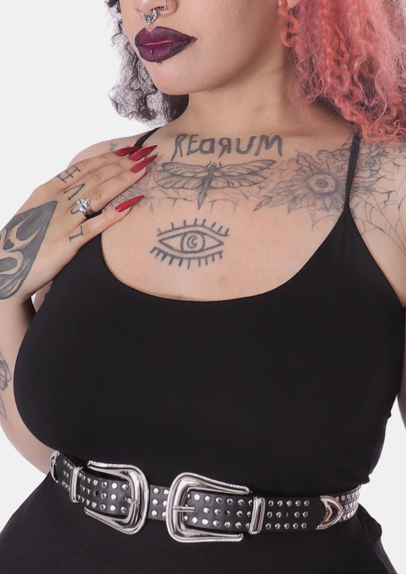 O Cinto Bandit é perfeito para acinturar ou decorar seus looks com uma vibe western e boho. Feito em material sintético de origem não animal, possui rebites em toda a sua extensão, fivelas e ponteiras ornamentadas e sua regulagem vai de X até Xcm. Pode ser usado tanto na cintura quanto no quadril. O detalhe que faltava no seu guarda-roupa!