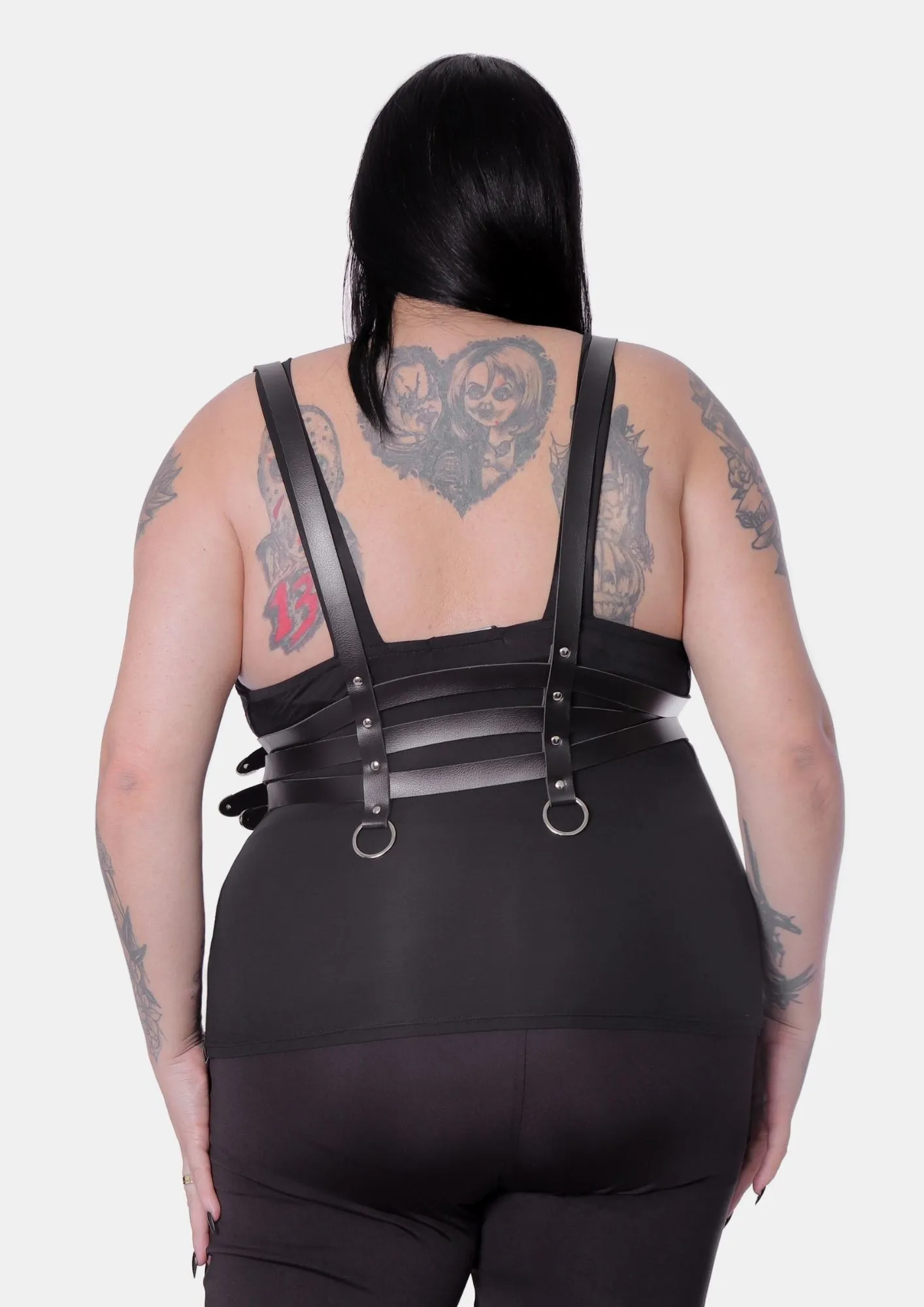 O Harness Triplo Fivelas Banshee é o acessório perfeito para completar seus melhores looks! Feito em material sintético de origem não animal que imita couro, o modelo consiste em um cinto com duas alças tipo suspensórios e aplicação de fivelas tipo western com ponteira. Seus materiais são de excelente qualidade e não descascam nem enferrujam, e seu design possui regulagens ao longo de toda peça para servir com exatidão uma gama ampla de corpos.