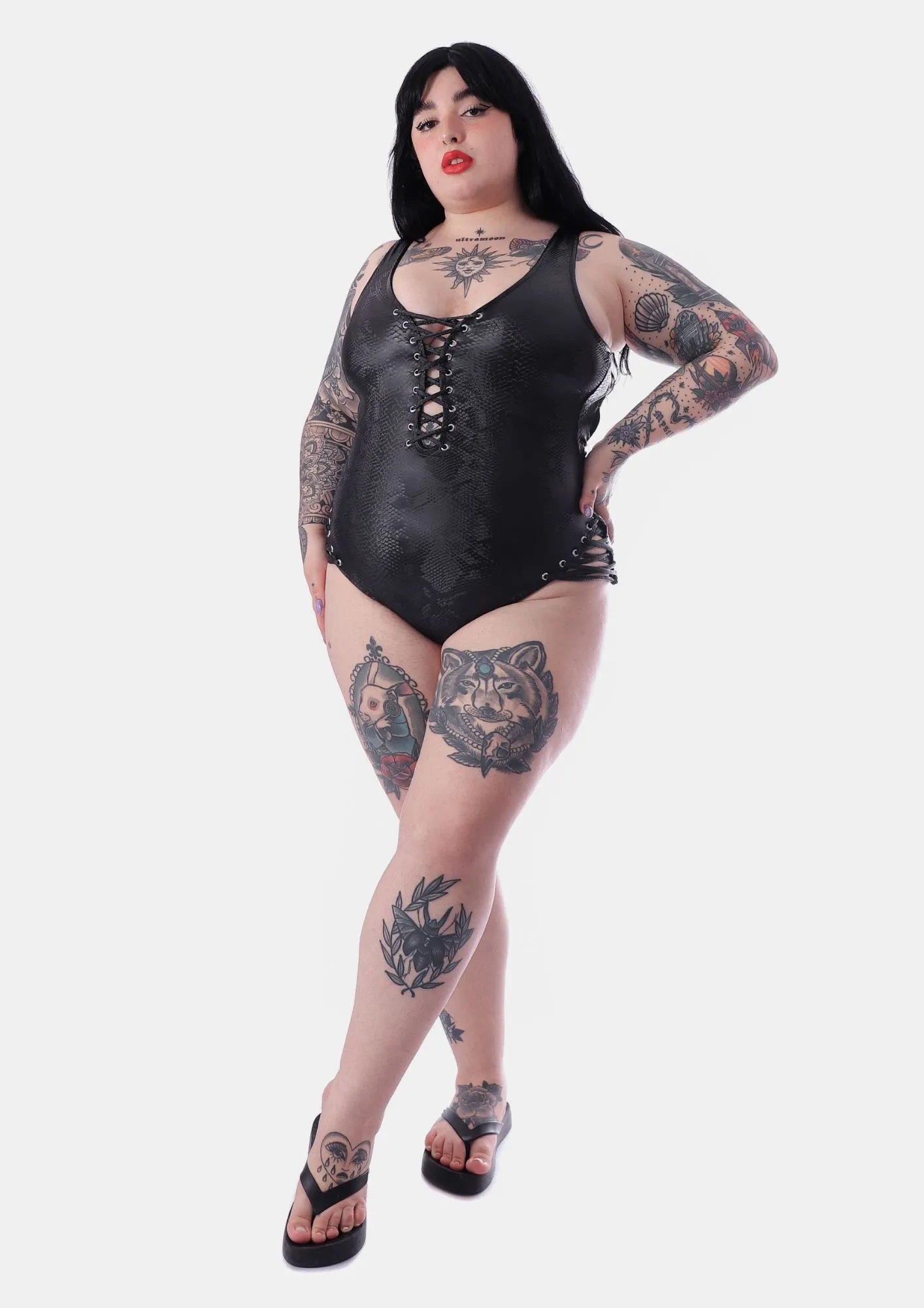 Confeccionado em material premium com textura de cobra e brilho glamouroso, o Body Mamba Negra oferece elasticidade excepcional, adaptando-se a diferentes formatos de corpo. Uma peça versátil que vai da praia à piscina com estilo inigualável.