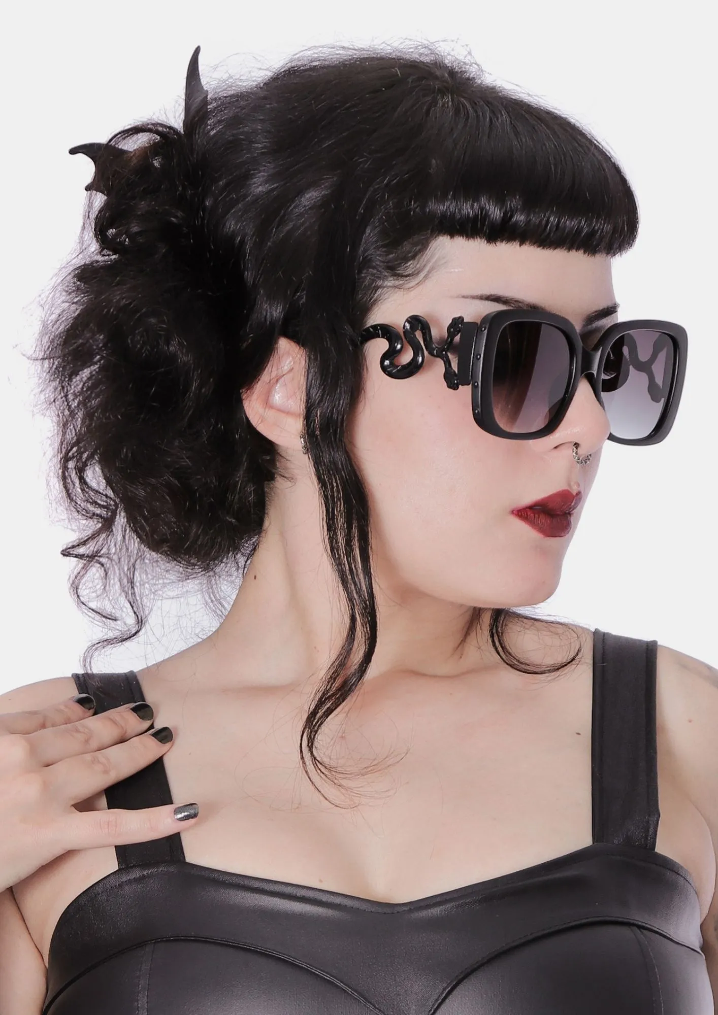 O Óculos Lilith é a definição de IMPACTANTE: Seu design vintage, modelagem quadrada e detalhe de cobras nas hastes é garantia de arrancar olhares por onde passa. Acompanha porta óculos protetora, pra proteger sua peça de arranhões e garantir sua durabilidade.