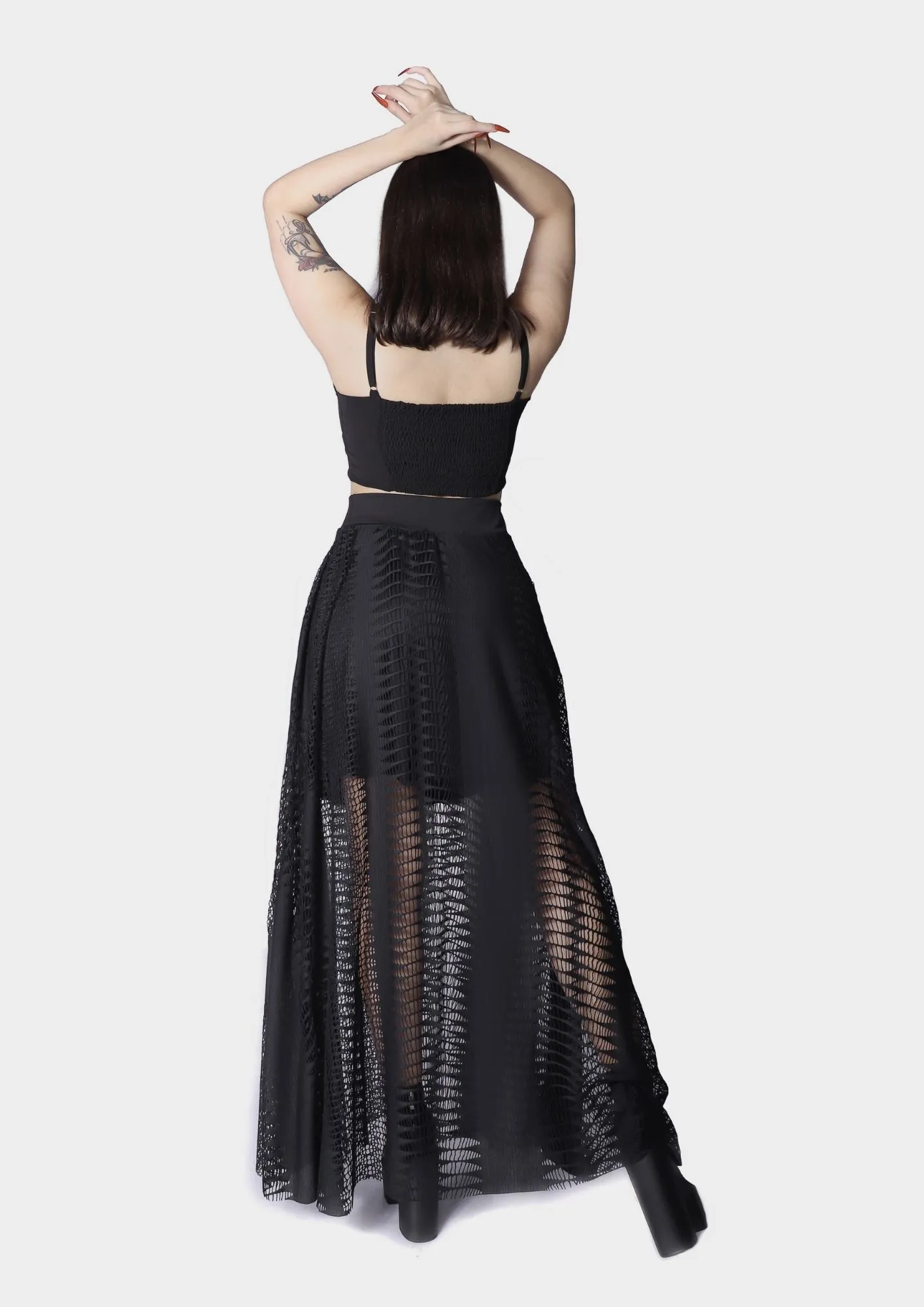 A Saia Longa Gardenia entrega TUDO que a trevosa tropical precisa nos dias de calorão! Seu material é uma trama tipo arrastão com design diferenciado, garantindo frescor e conforto nos dias quentes. Possui forro em material de excelente qualidade e cós elástico que garante a praticidade ao vestir. Um item ESSENCIAL no guarda-roupa da trevosa tropical!