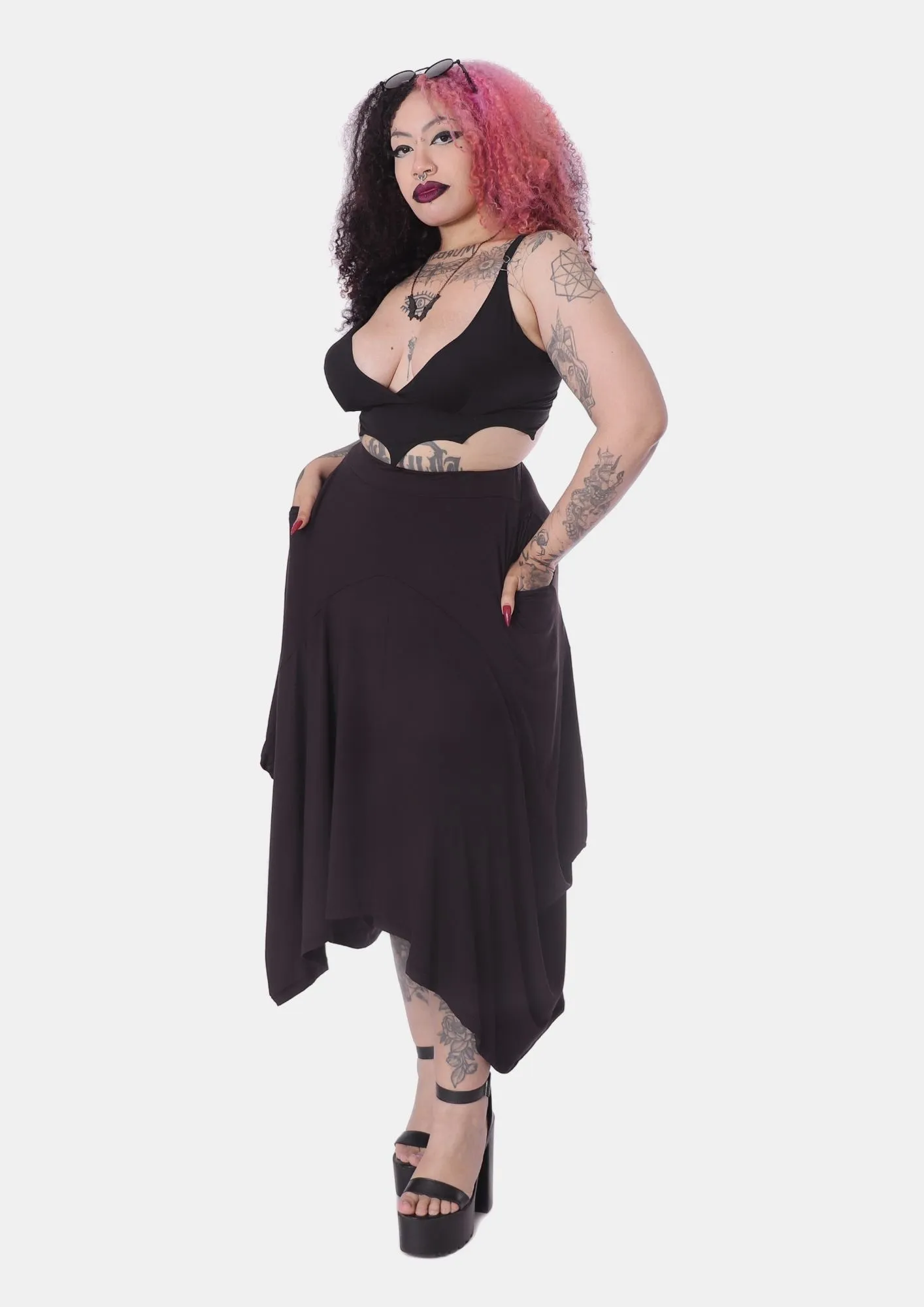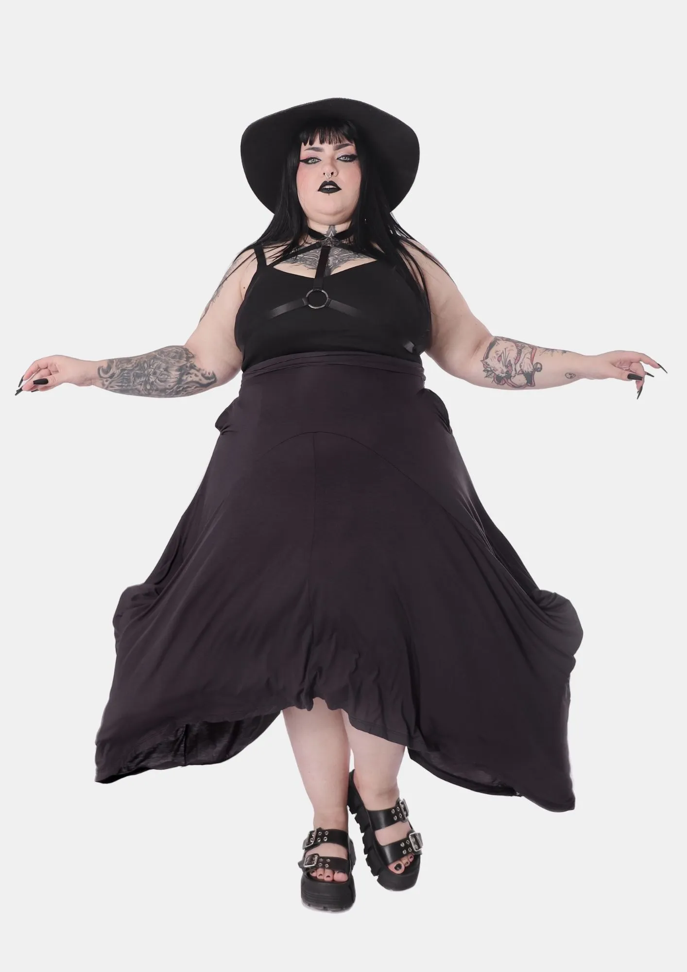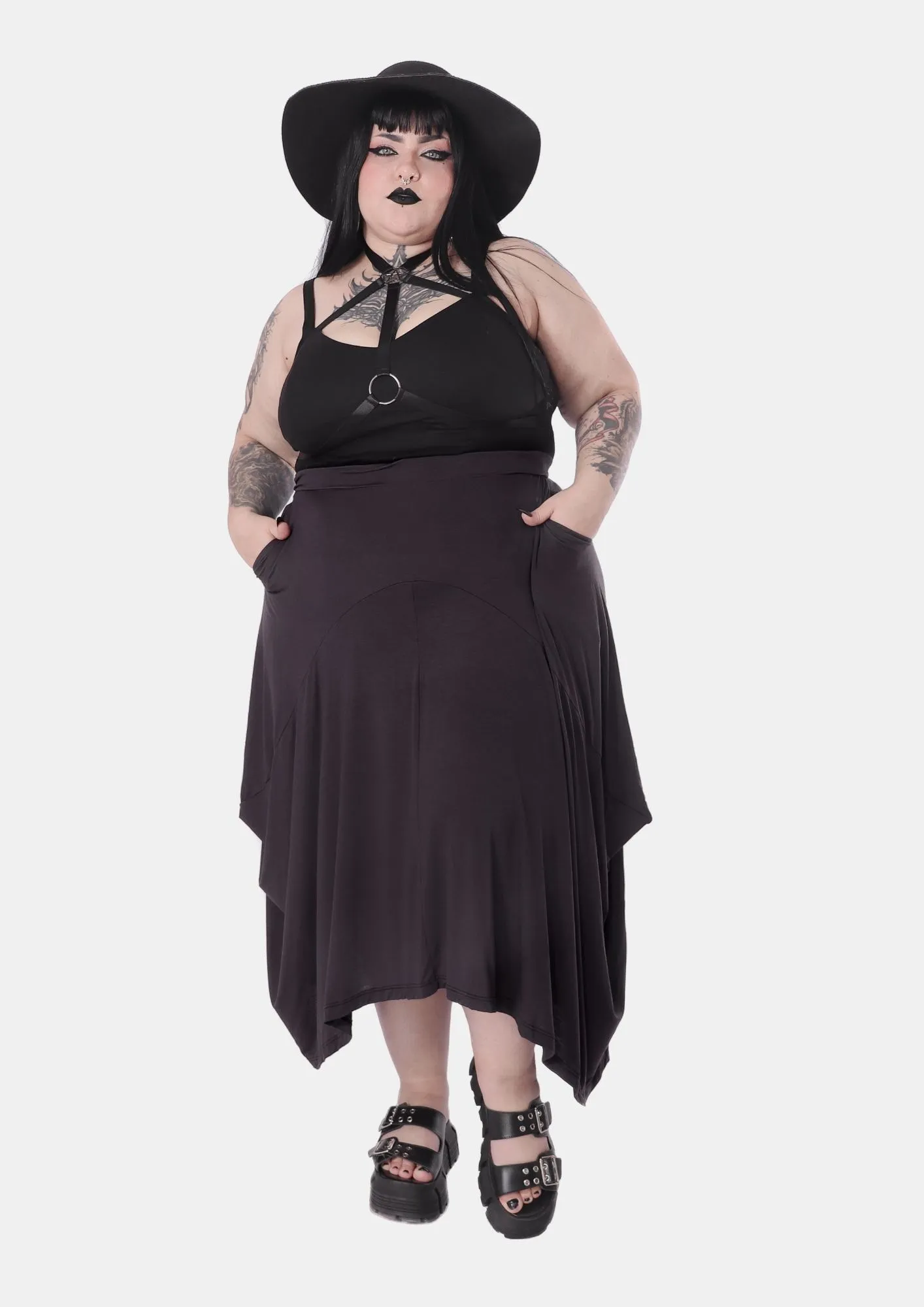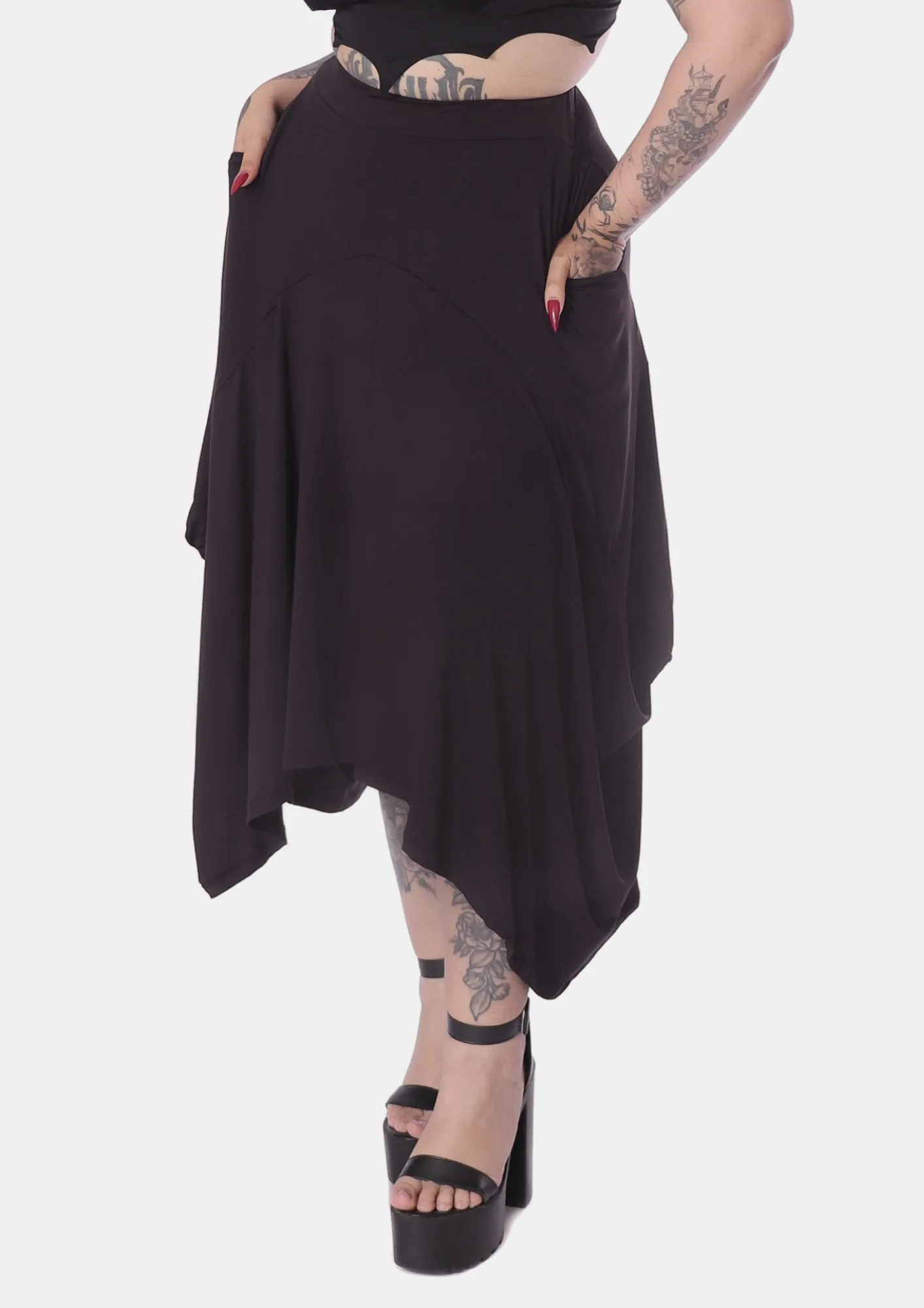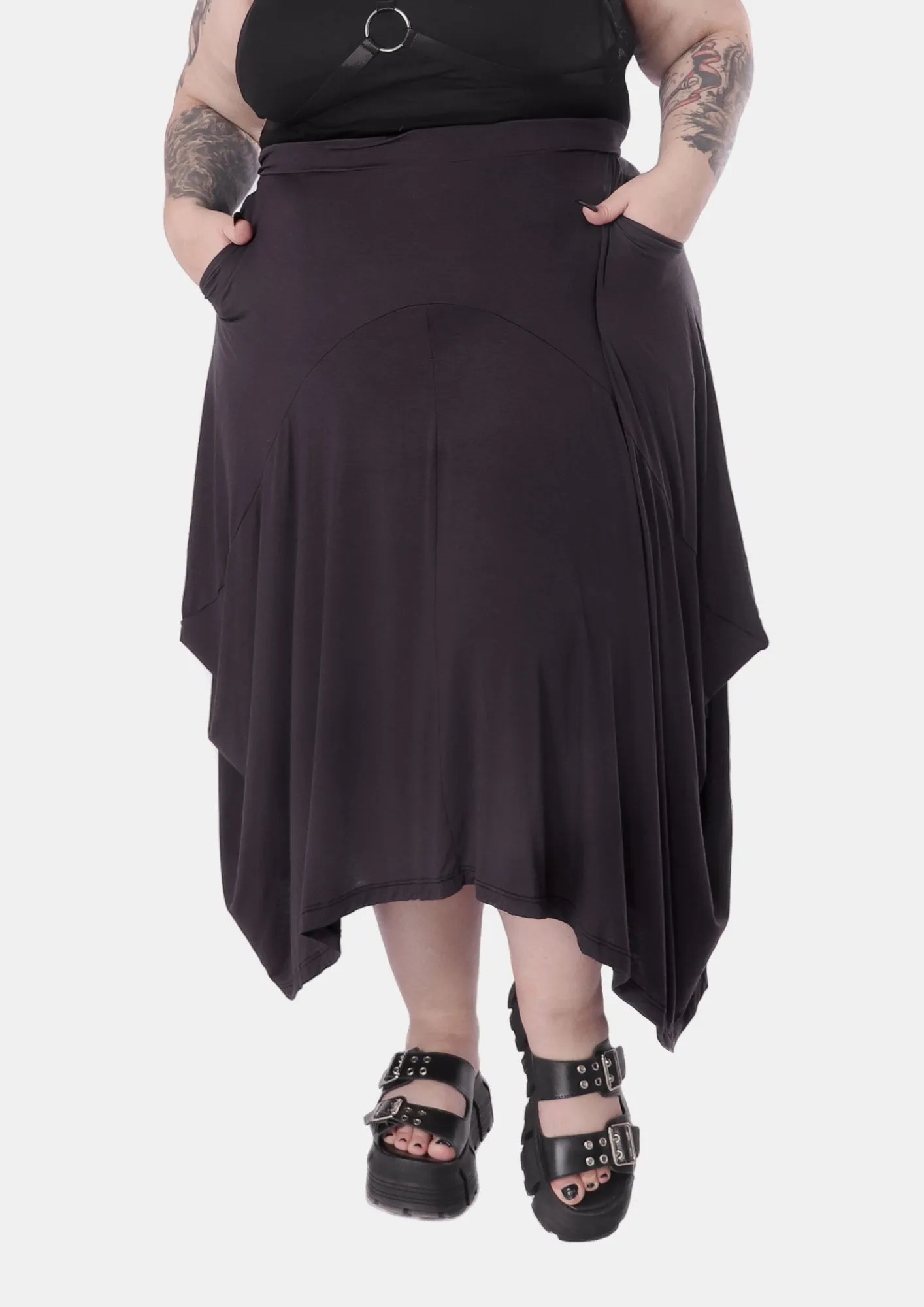 A Saia Hera é praticidade, leveza e movimento em uma peça só! Feita em malha Micromodal de excelente qualidade e garantindo sua leveza nos meses mais quentes do ano, possui design de pontas assimétricas esvoaçantes que conferem o ar místico da peça. O detalhe prático fica por conta dos bolsos funcionais, perfeitos para pequenos pertences. Uma peça especial, perfeita para todas as summer goths!