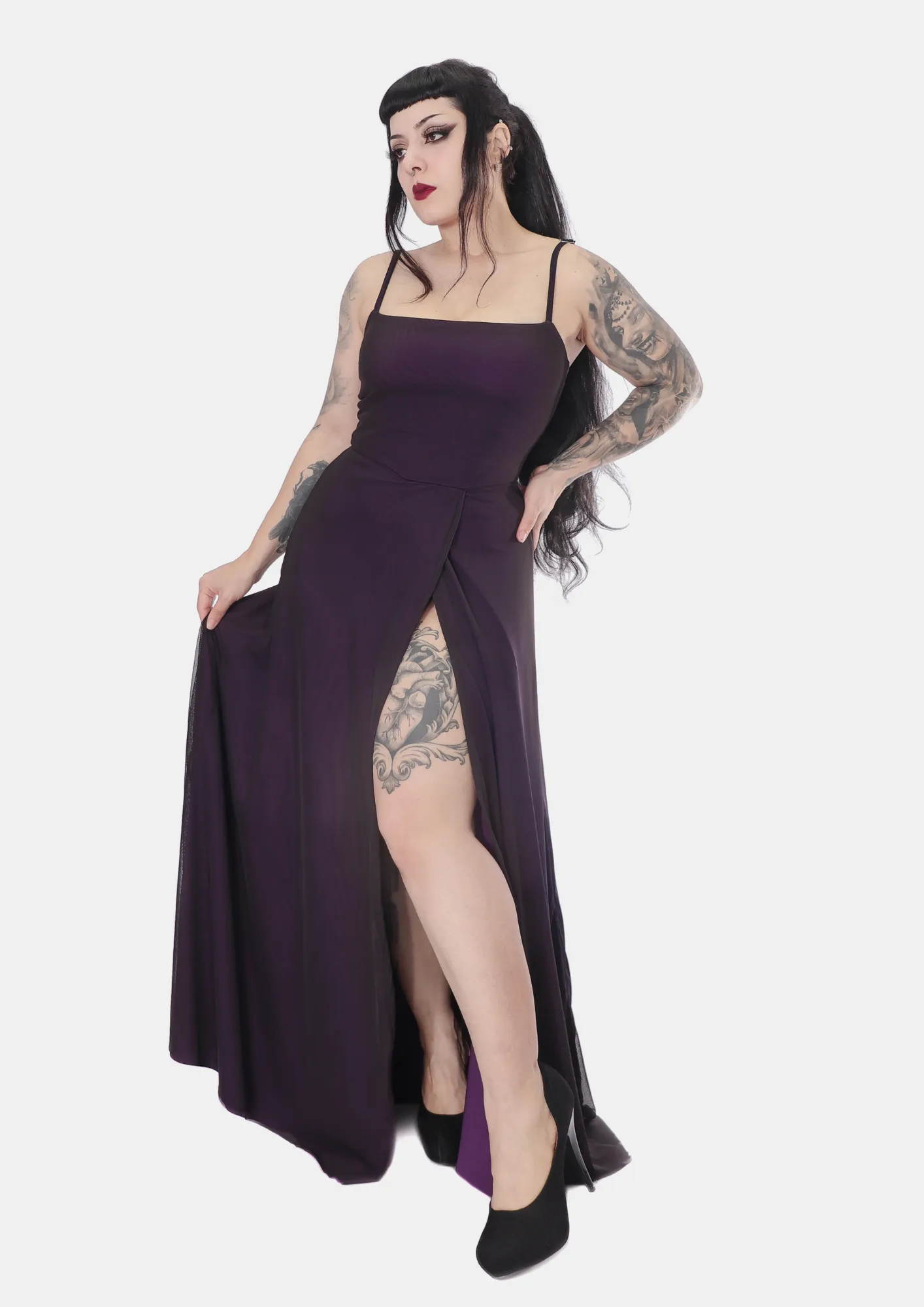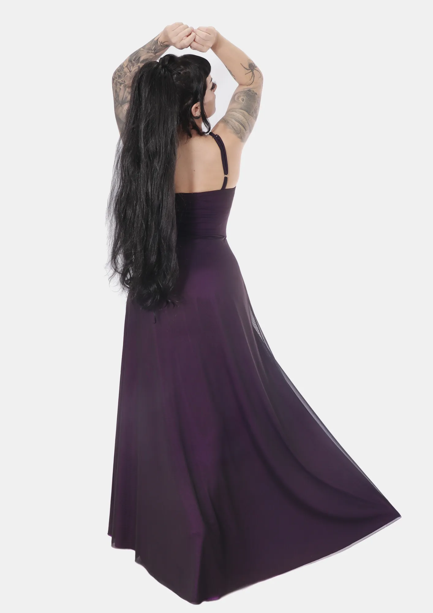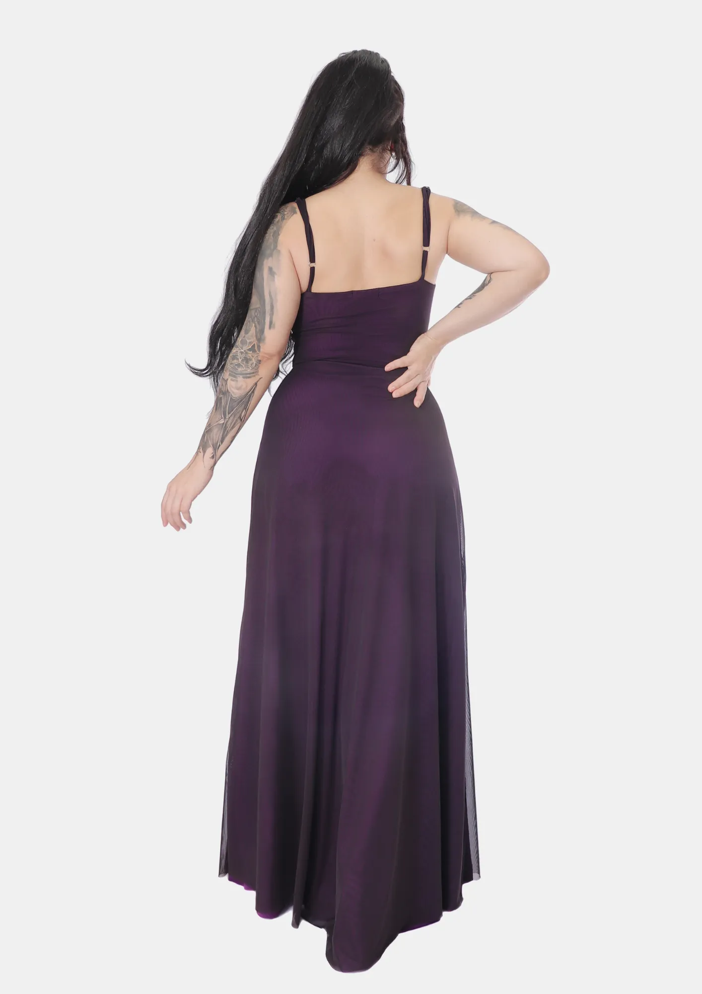 Um longo roxo que combina sofisticação e presença, esse é o Vestido Eden Purple. Possui alças reguláveis e uma fenda profunda que acrescenta movimento, além da camada de tule por cima acrescentar mistério. Ele é um vestido perfeito para quem deseja impressionar.